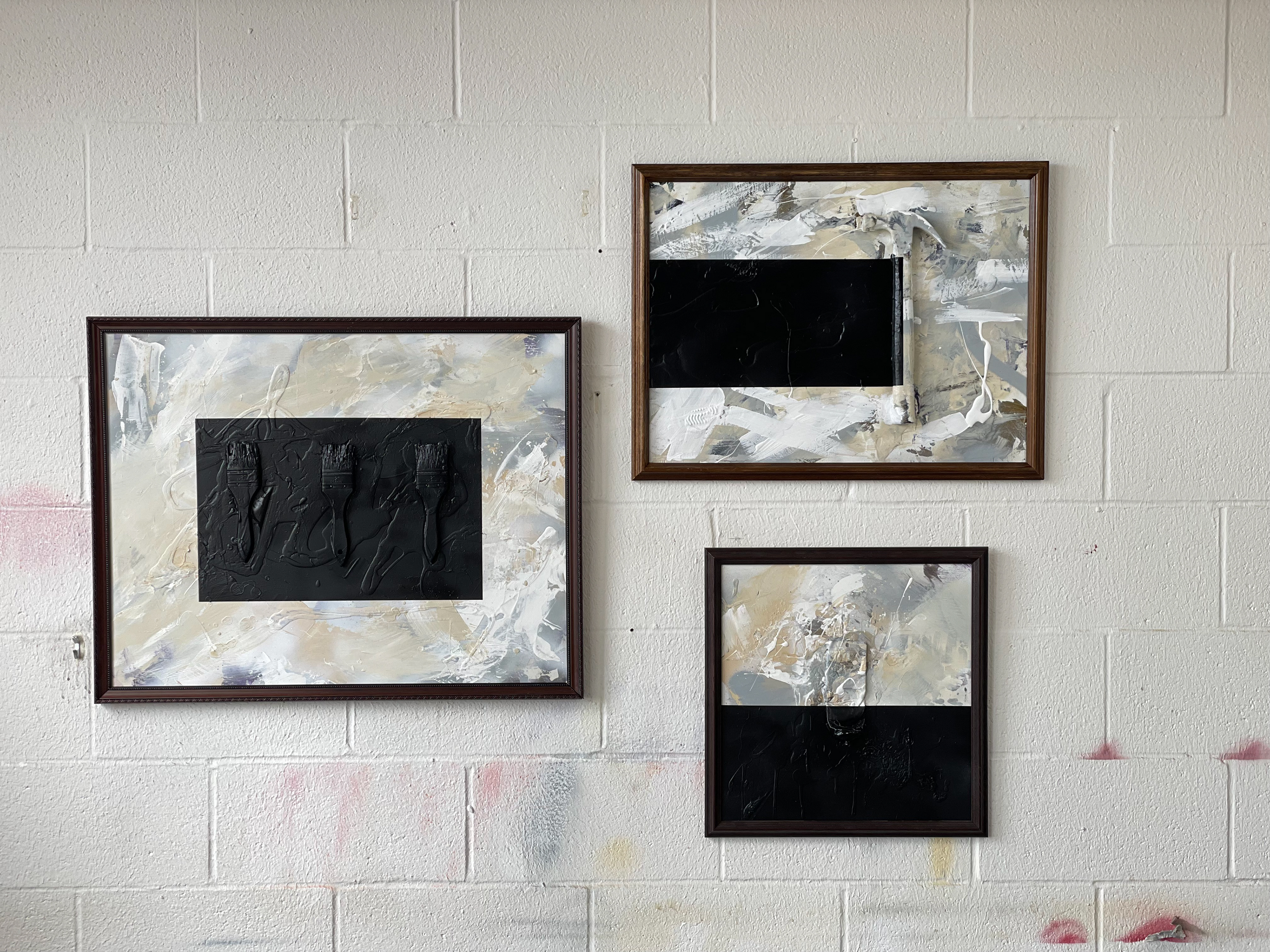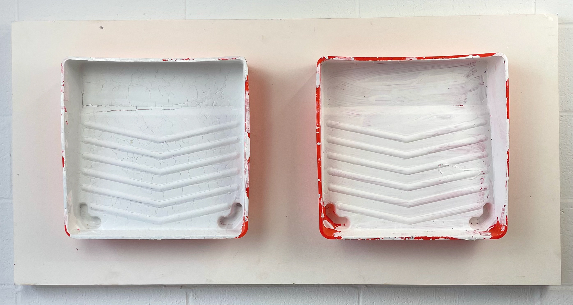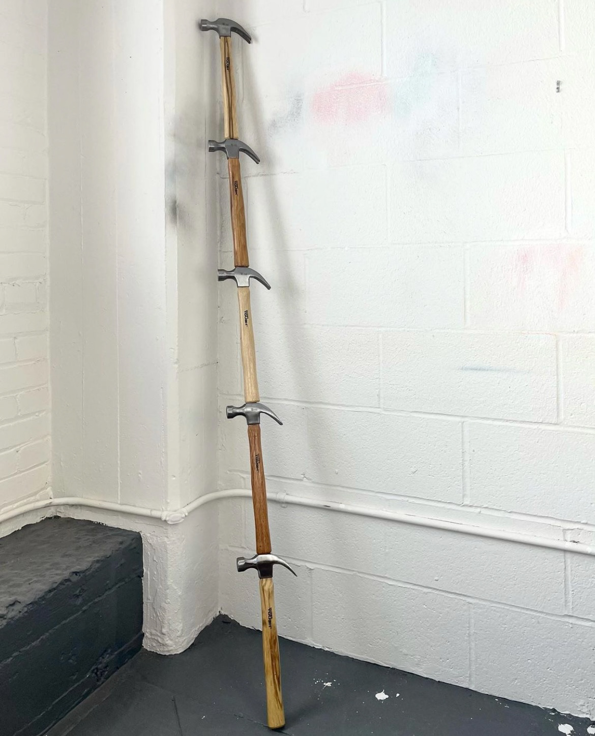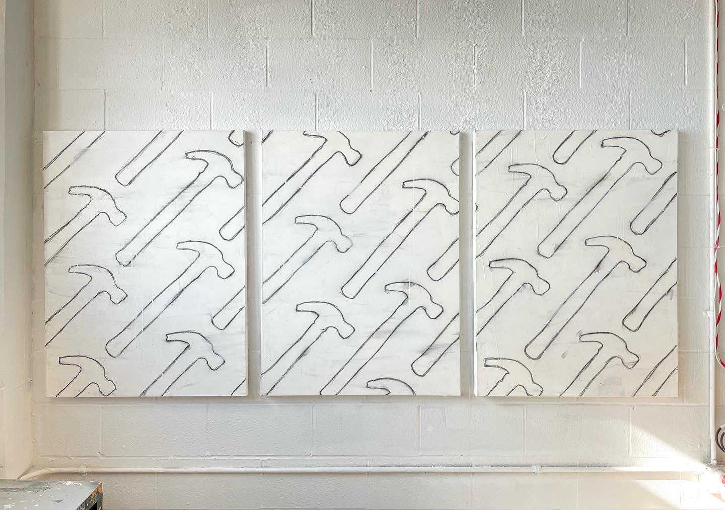 "Diagonal Hammers" 2021, painted object placement on wood panel 40” x 30”