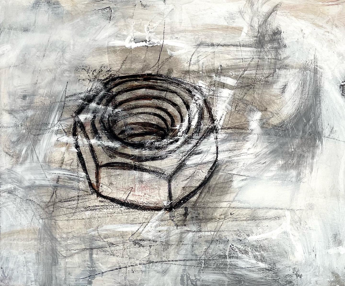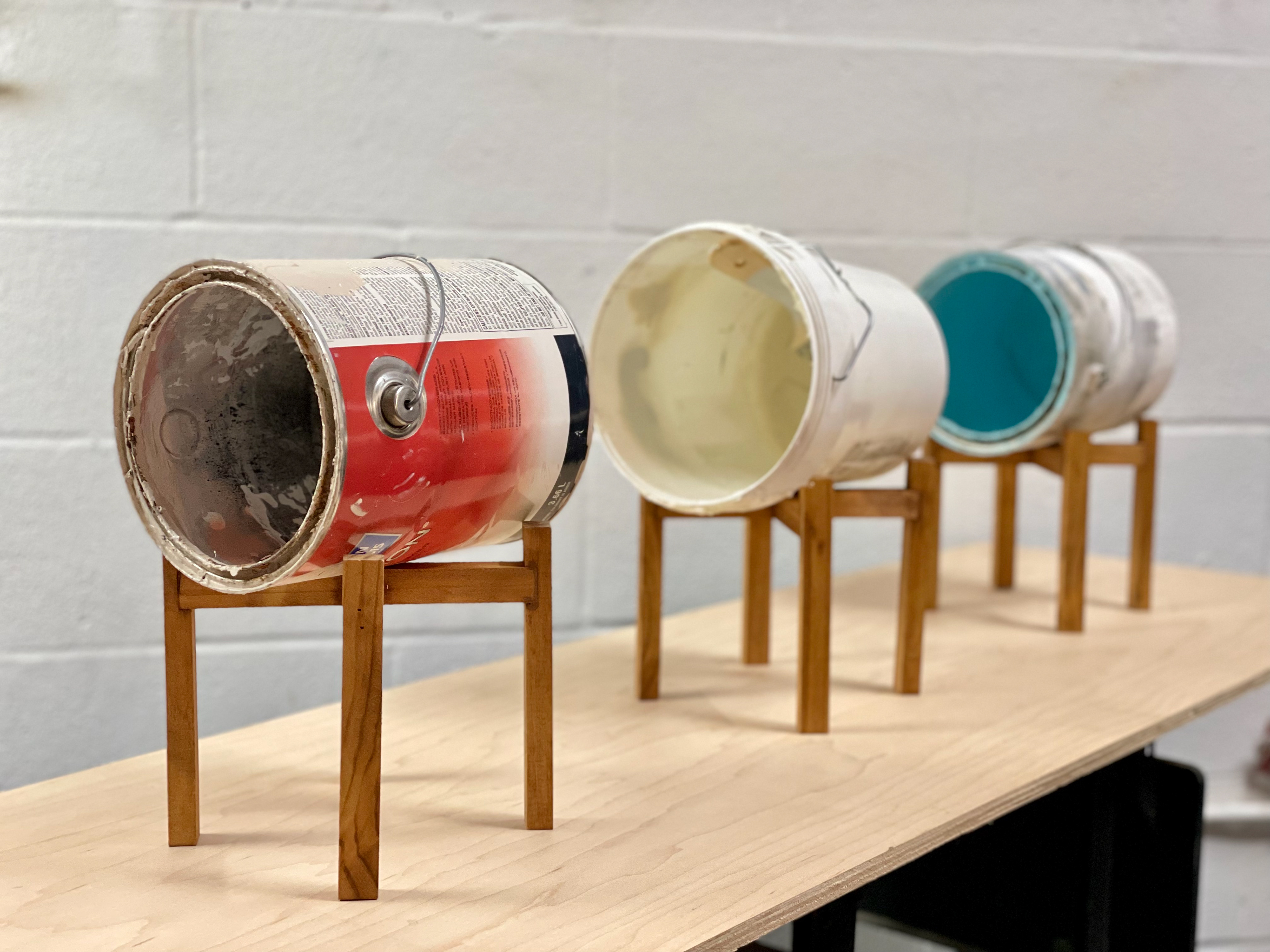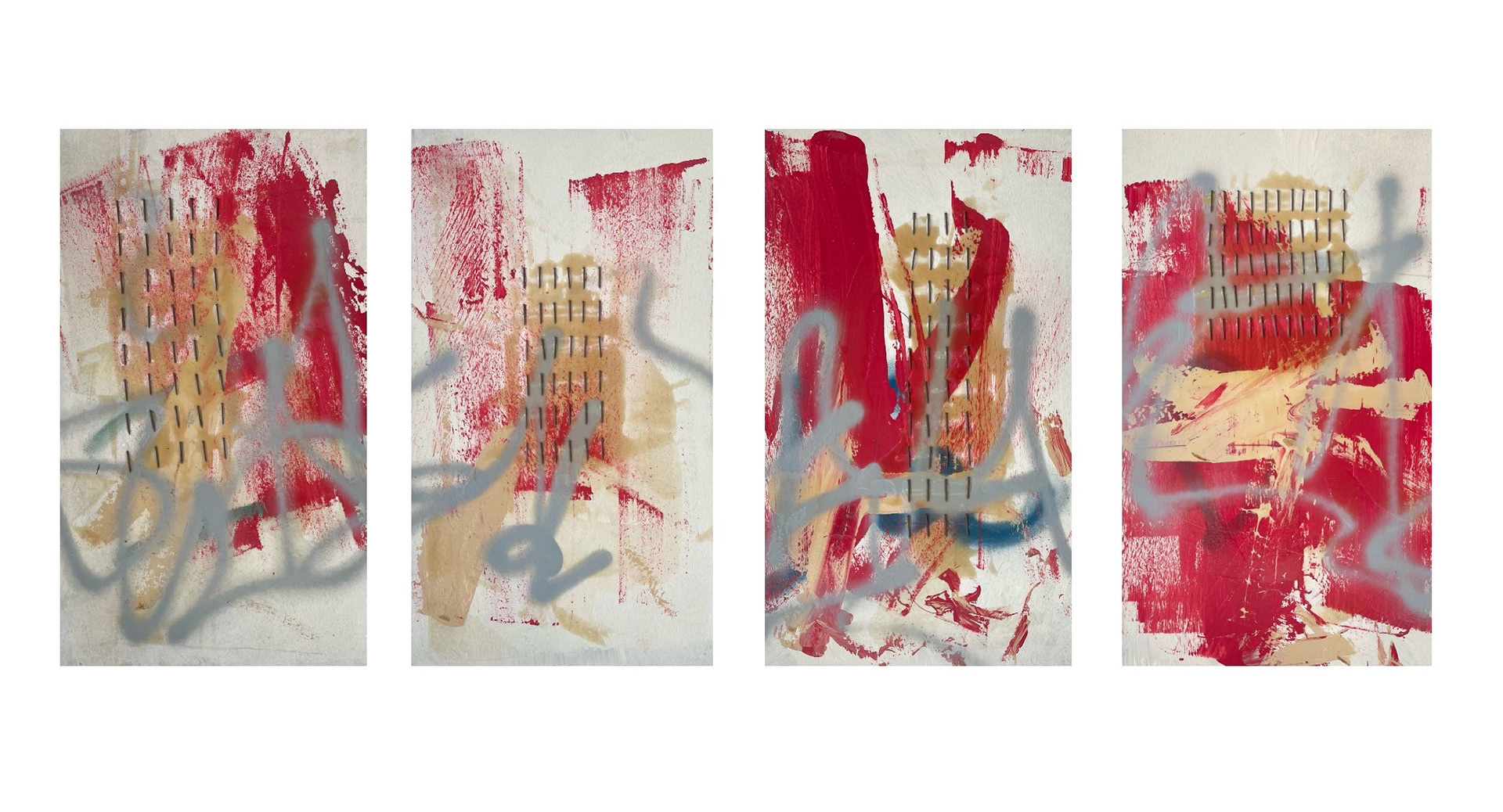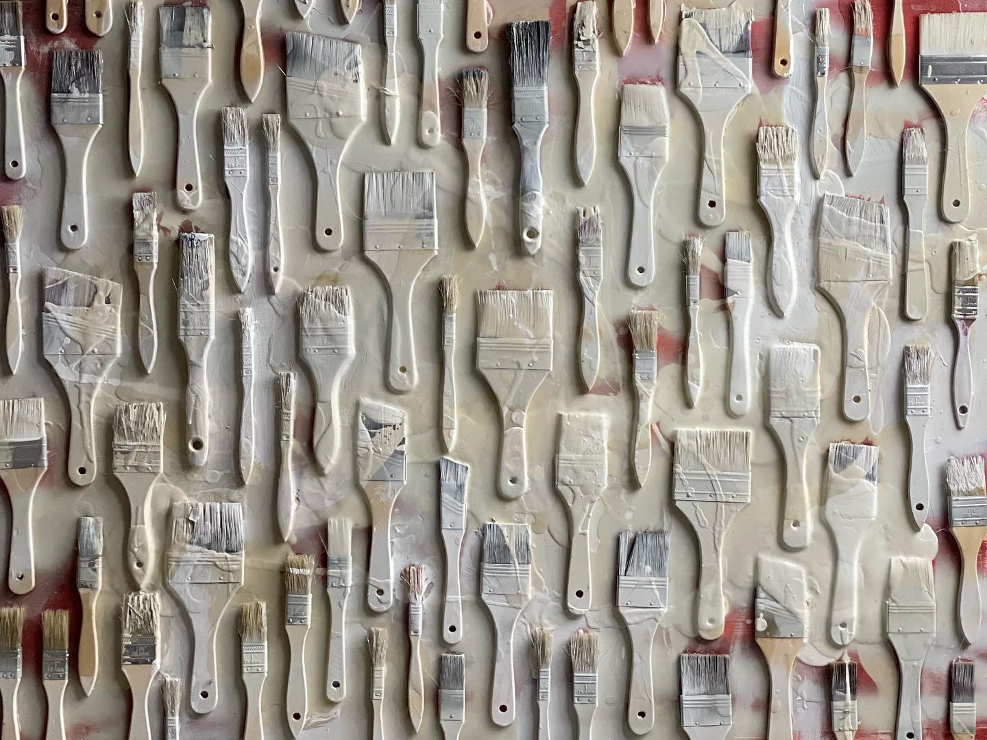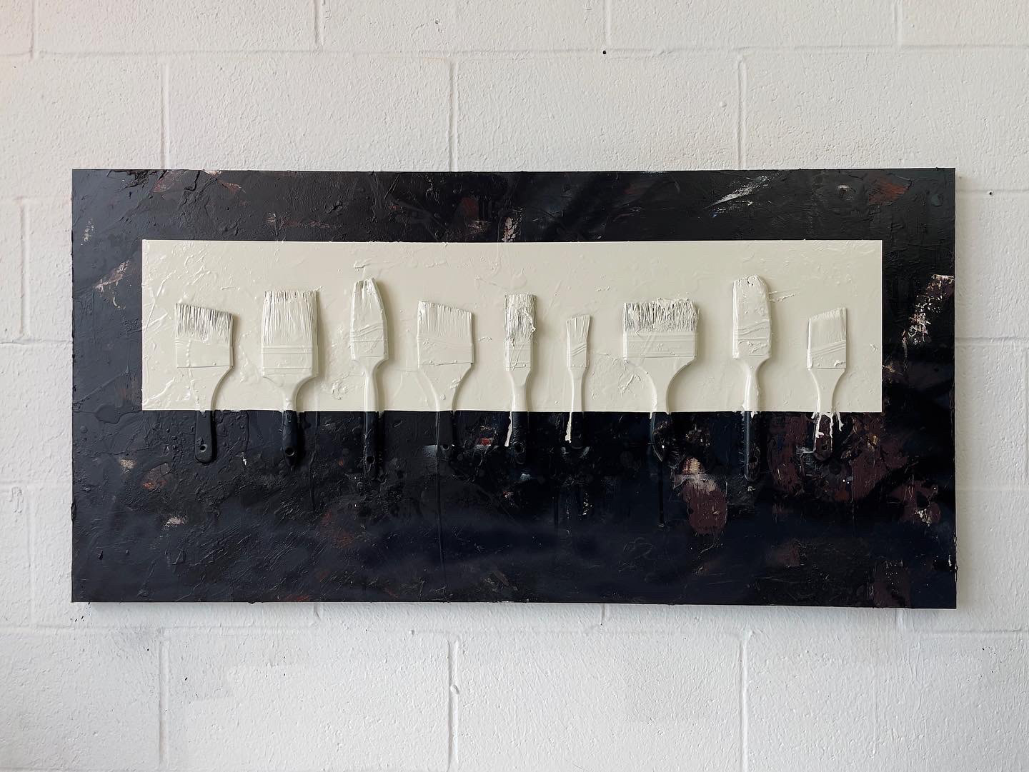 "Diagonal Hammers" 2021, painted object placement on wood panel 40” x 30”