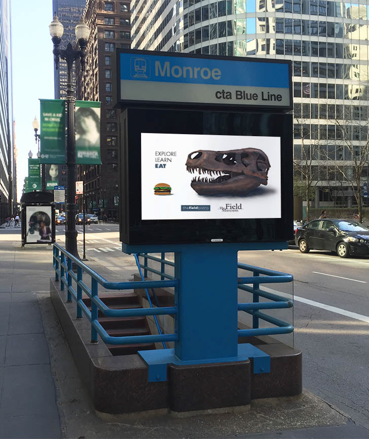 The Field Bistro is a wonderful place to grab a bite to eat while exploring the Field Museum. This illustration was created for the Bistro’s advertising and shows the museums most prized resident, Sue.